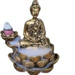 Incensário cascata e vareta buda na flor de lotús backflow fumaça invertida
