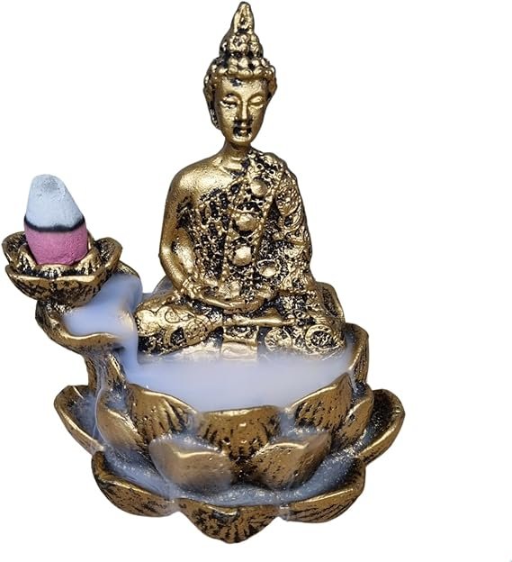 Incensário cascata e vareta buda na flor de lotús backflow fumaça invertida