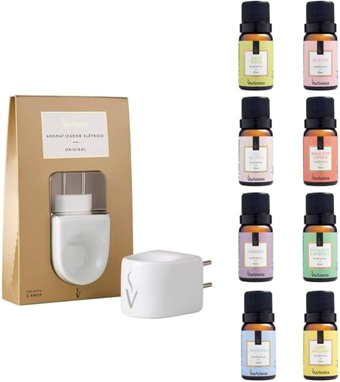 Kit Aromatizador Elétrico Difusor e 8 Essências Sortidas Via Aroma 10ml