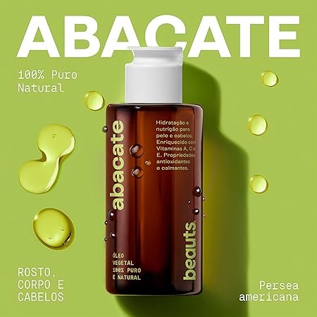 / Óleo de Abacate 100% Puro Vegetal e Natural – Hidratante Corporal, Massagem, Banho Aromaterapia e Uso Capilar – Tampa Gotejadora – 140ml Beauts